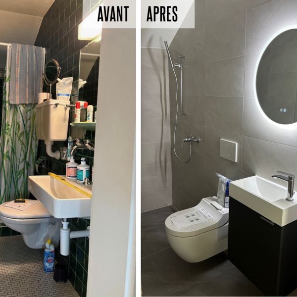 Nous planifions ensemble les travaux à réaliser, coordination et suivi des différentes étapes de la rénovation : protection du chantier, évacuation des déchets, modifications et déplacement des arrivées d'eau, maçonnerie, carrelage, peinture, électricité et pose des appareils sanitaires.